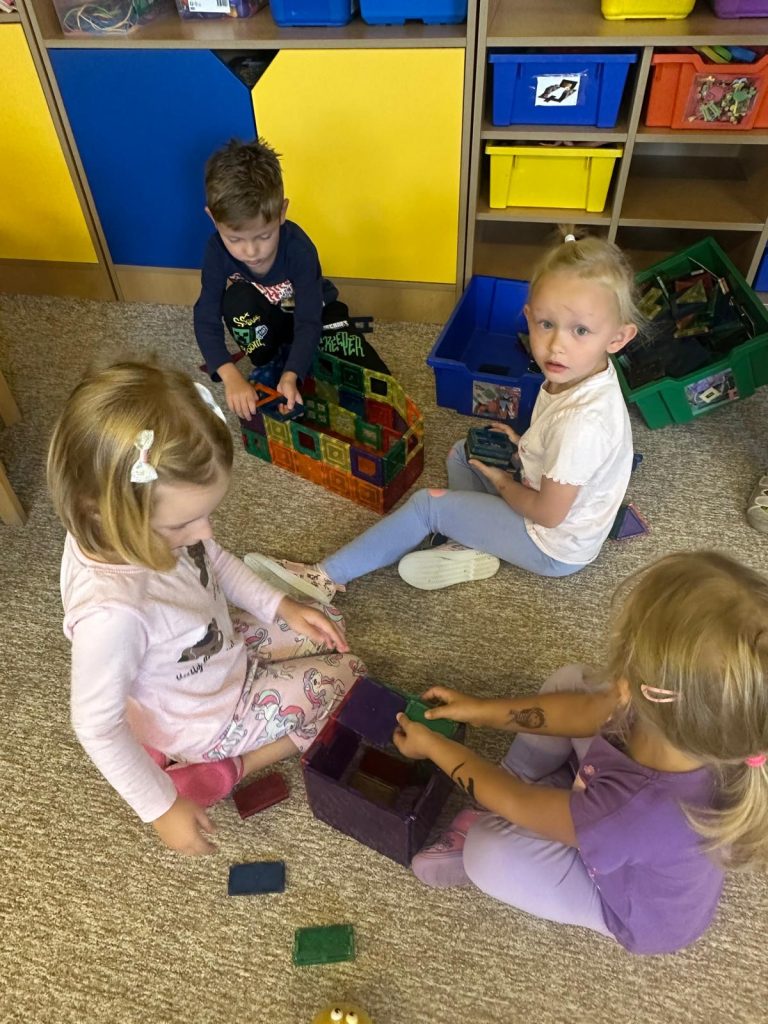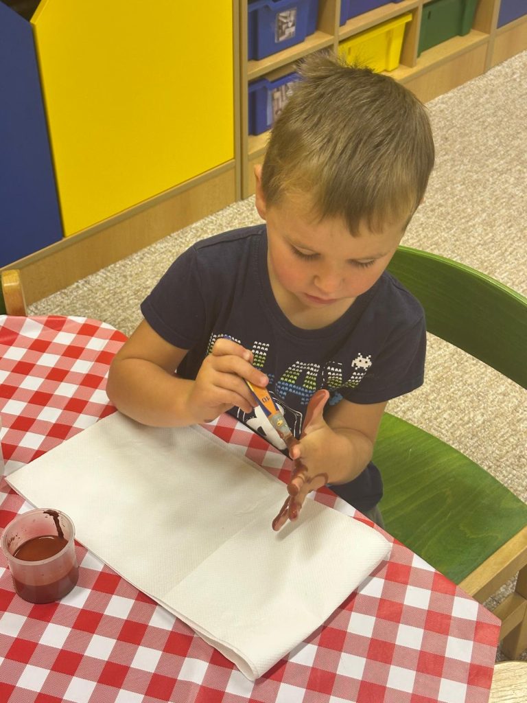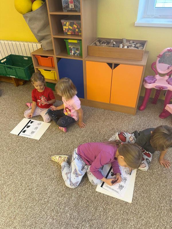 Měsíc ZÁŘÍ ve školce uběhl jako voda a děti se během tohoto období spolu krásně sžily. Poznaly nové kamarády, nové hračky, prostory. Učíme se samostatnosti při stolování, kdy si děti samy nalévají tekutiny podle svého výběru a potřeb, při oblékání, používání WC, uklízet hračky na své místo a trpělivosti při hrách. Učíme se dodržovat pravidla ve třídě. Na vycházkách pozorujeme změny v přírodě, plody podzimu a vše, co k podzimu patří.