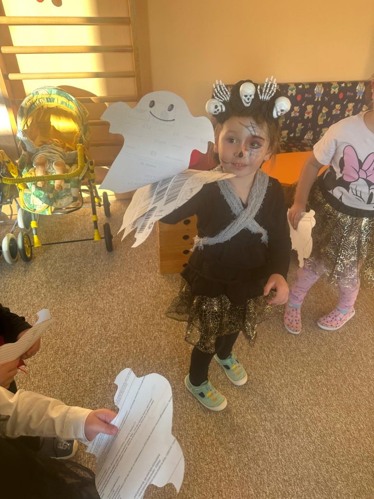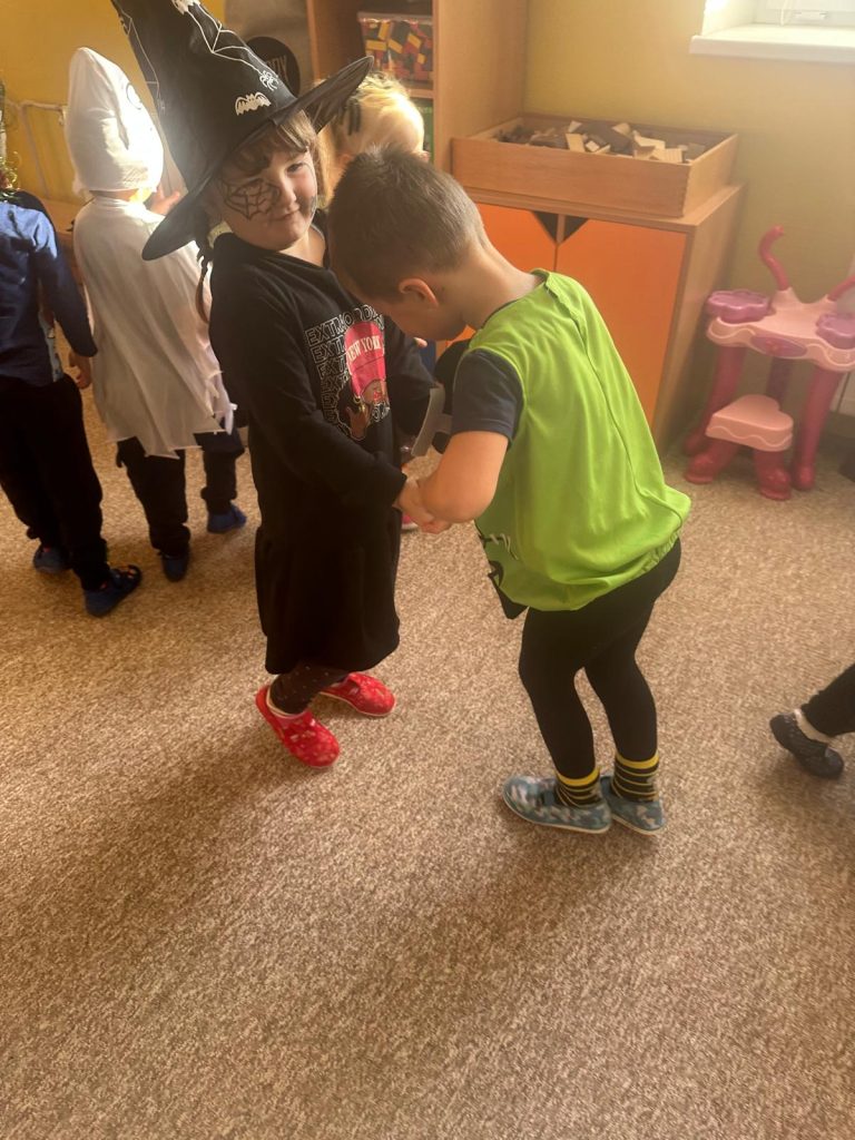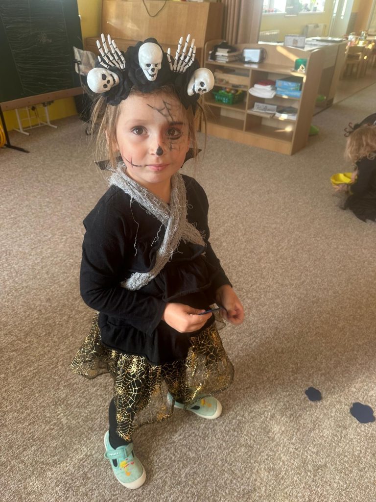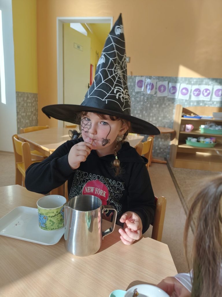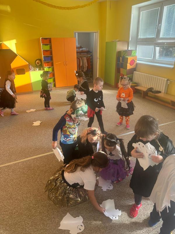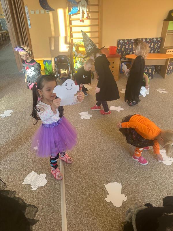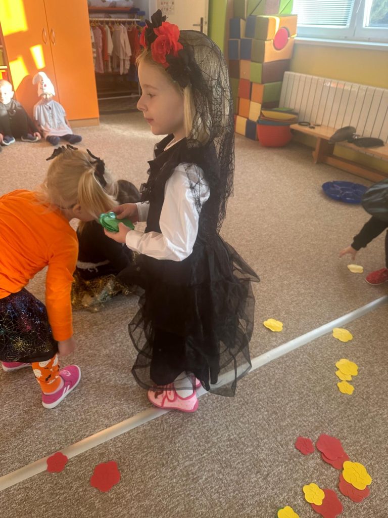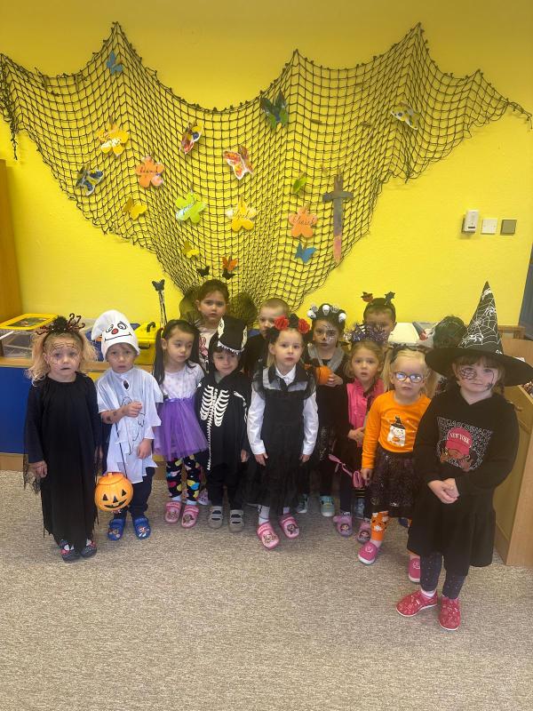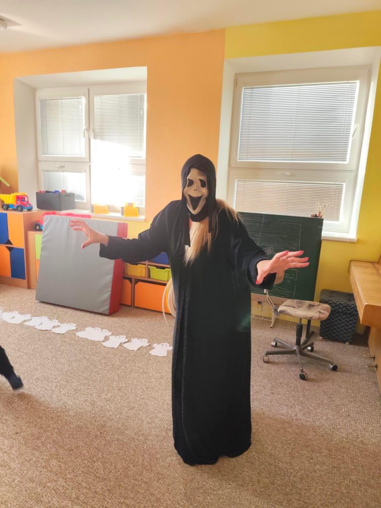 NÁŠ STRAŠIDELNÝ HALLOWEENSKÝ DEN PLNÝ STRAŠIDEL, SOUTĚŽÍ, PÍSNIČEK A TANCE. DĚKUJEME MAMINKÁM ZA BOHATOU HOSTINU.