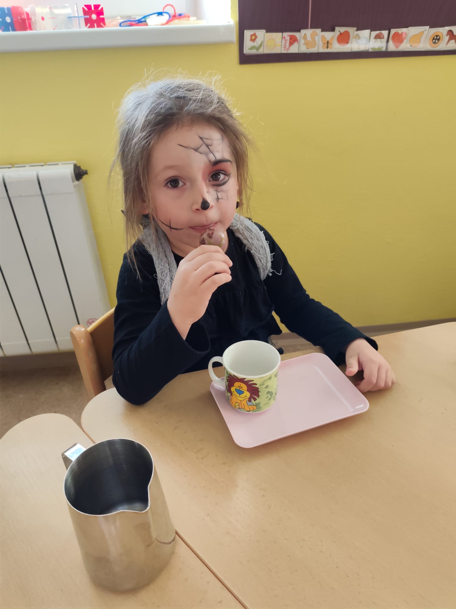 NÁŠ STRAŠIDELNÝ HALLOWEENSKÝ DEN PLNÝ STRAŠIDEL, SOUTĚŽÍ, PÍSNIČEK A TANCE. DĚKUJEME MAMINKÁM ZA BOHATOU HOSTINU.