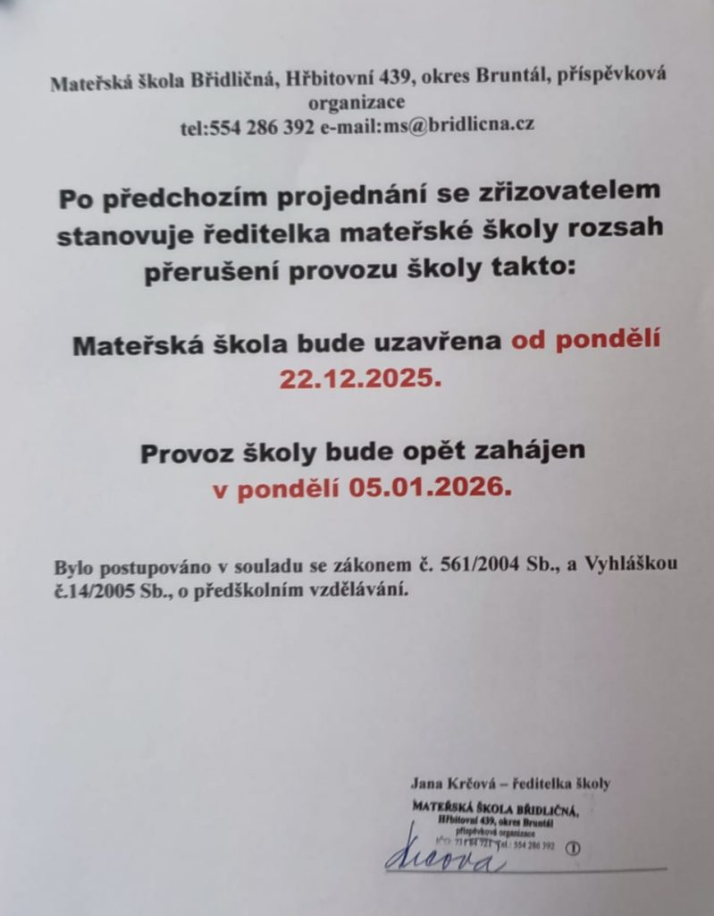 Také žádáme rodiče, aby respektovali informace od paní učitelek týkající se příznaků nemoci u jejich dětí. Chápeme, že jste často velmi vytíženi prací a máte to obtížné, ale prosíme, abyste hledali alternativní řešení než umístit nemocné nebo nedoléčené děti do kolektivu zdravých dětí.