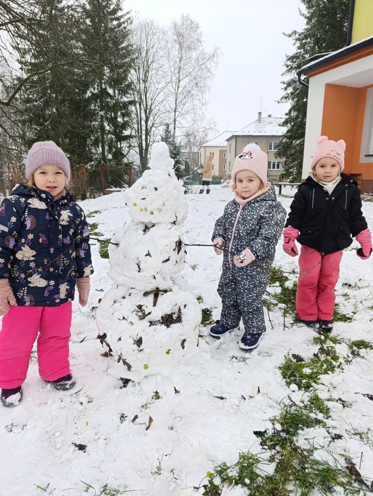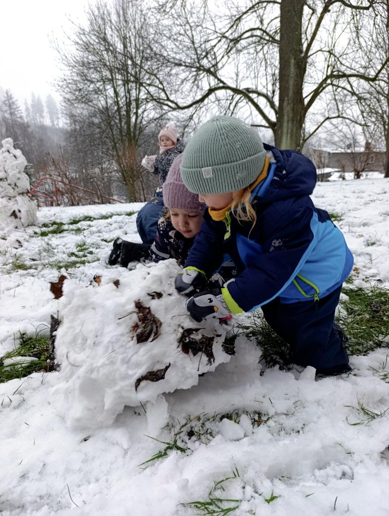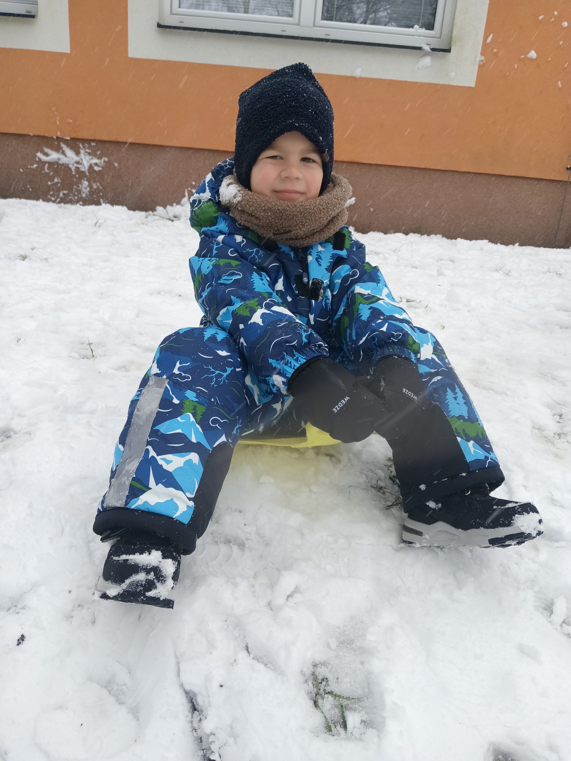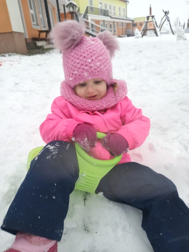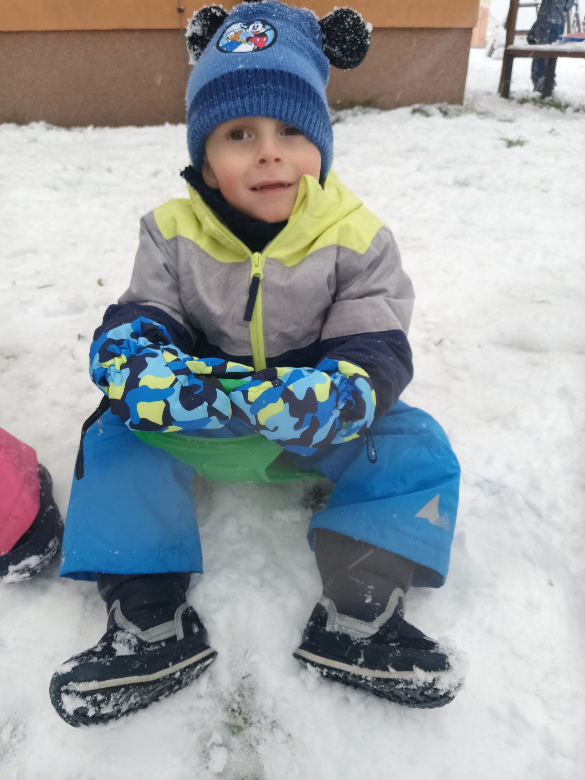A když připadlo sněhu děti si užívaly jízdu na kluzácích.