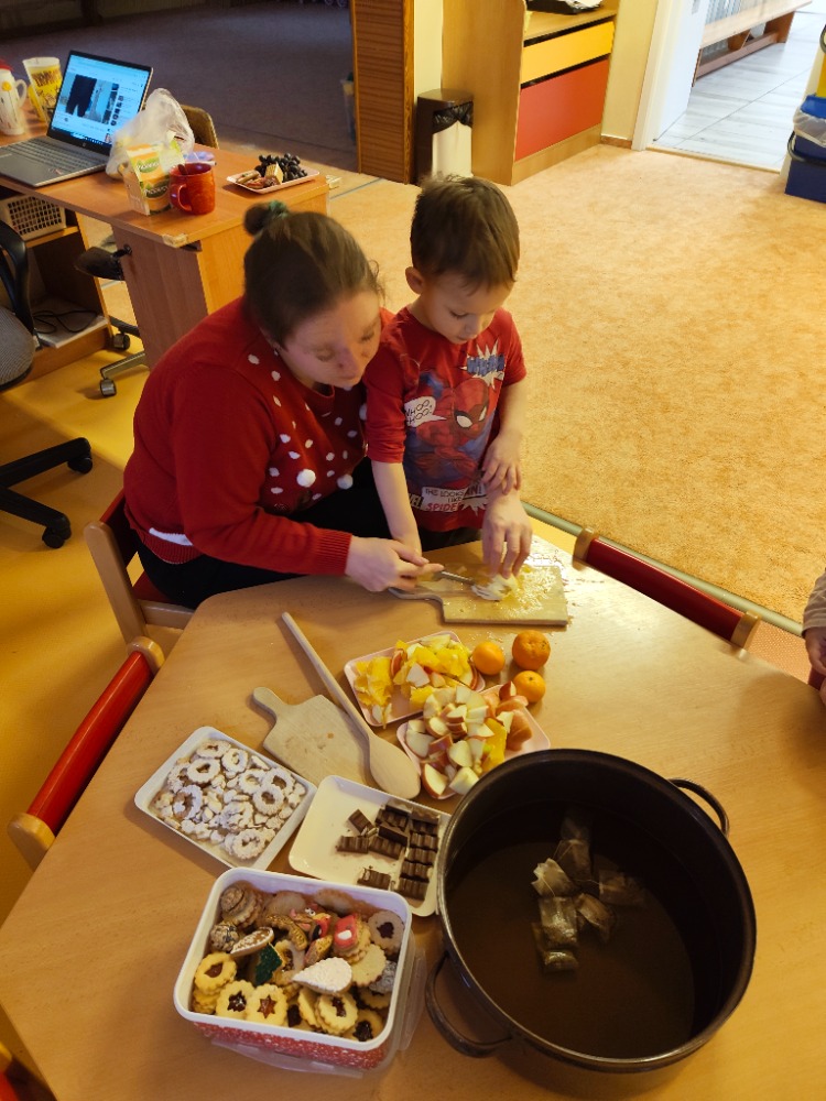 Poslední den ve školce v tomto roce jsme si užili v krásné vánoční atmosféře. Společně jsme si uvařili voňavý vánoční čaj, pochutnali si na cukroví a povídali si o Vánocích. Velkou radost nám udělal příchod Ježíška, který nám přinesl dárečky a vykouzlil úsměvy na dětských tvářích. Den byl plný pohody, smíchu a těšení se na sváteční čas, který už klepe na dveře.