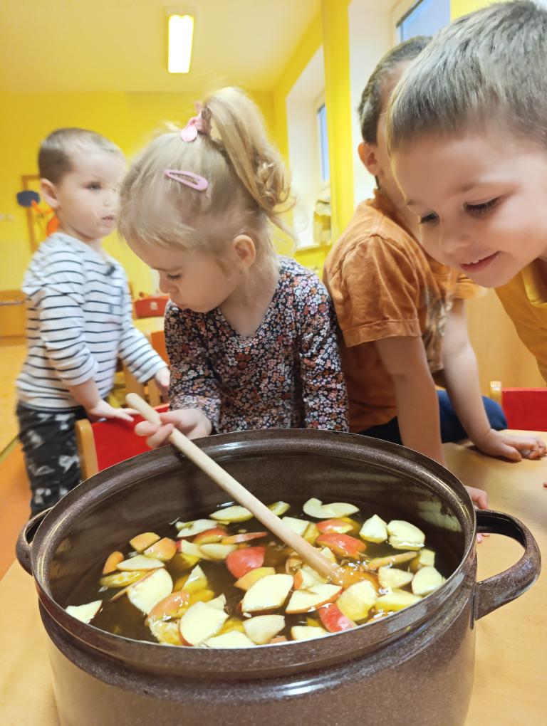 Učí se nové říkanky a písničky, například adaptační písničku „Školka volá“ nebo říkanku „Dej si prstík“. Při výtvarné činnosti se děti seznámily s technikou lepení – na šablonu ježka lepily listy a fixou dokreslovaly detaily. Vznikli tak jejich první podzimní ježci.