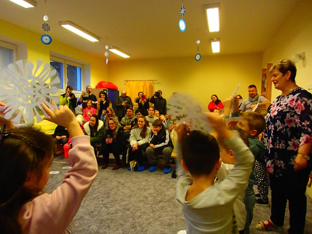 V RÁMCI SPOLUPRÁCE SE ZÁKLADNÍ ŠKOLOU, SE DĚTI Z MATEŘSKÉ ŠKLOLY BYLY PODÍVAT V ZÁKLADNÍ ŠKOLE NA PŘEDSTAVENÍ ŠKOLÁKŮ „BROUČCI“. POZVALI JE TAM SOUROZENCI A NA OPLÁTKU ZASE PŘIŠLI ŠKOLÁCI DO ŠKOLKY, PODÍVAT SE NA VYSTOUPENÍ PŘEDŠKOLÁKŮ, KTERÉ DĚTI ZE ŠKOLKY NATRÉNOVALY NA VYSTOUPENÍ PRO RODIČE NA VÁNOČNÍ POSEZENÍ.