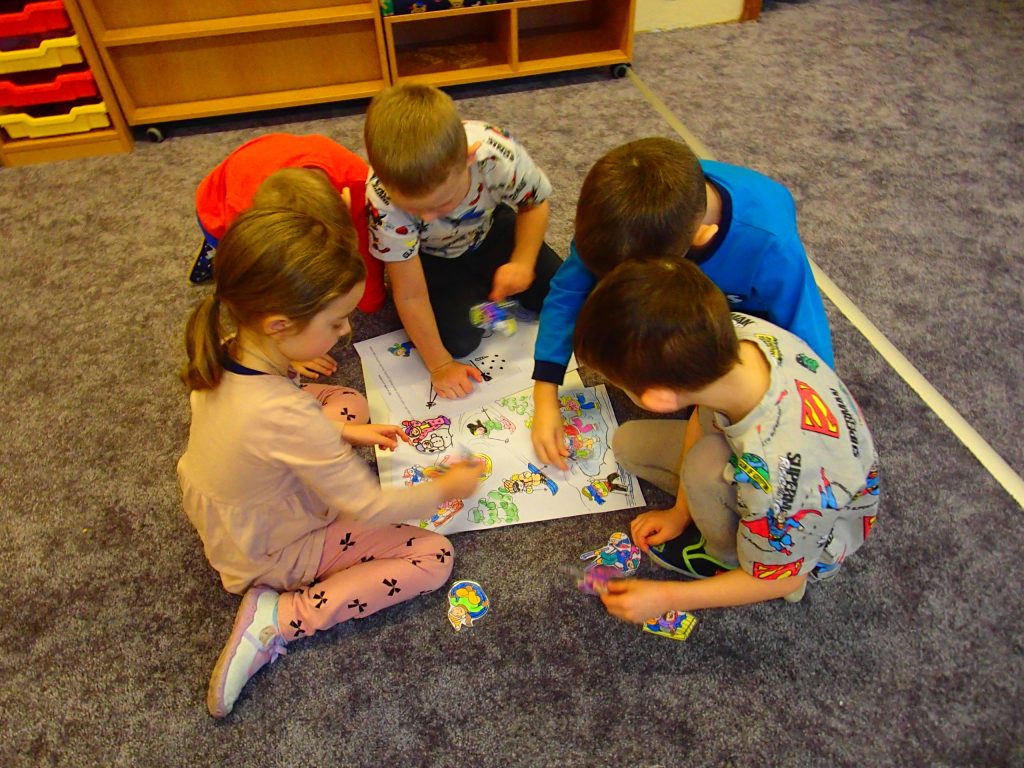DĚTI JSOU VEDENY K VZÁJEMNÉ SPOLUPRÁCI VE SKUPINÁCH, PROHLUBUJÍ SVÉ ZNALOSTI I VĚDOMOSTI K DANÉMU TÉMATU. ROZVÍJÍ SCHOPNOST SE DOMLUVIT A VYJÁDŘIT SVŮJ VLASTNÍ NÁZOR PŘI PLNĚNÍ ZADANÉHO ÚKOLU.