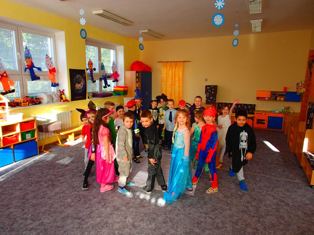 NEŽ ZAČAL DUŠIČEK BÁL, KAŽDÝ S CHUTÍ POMÁHAL. VÝZDOBU JSME VYTVÁŘELI, VELKOU RADOST Z TOHO MĚLI. VŠICHNI NÁPADY UŽ HÝŘÍ, DÝNĚ, DUCH I NETOPÝŘI.