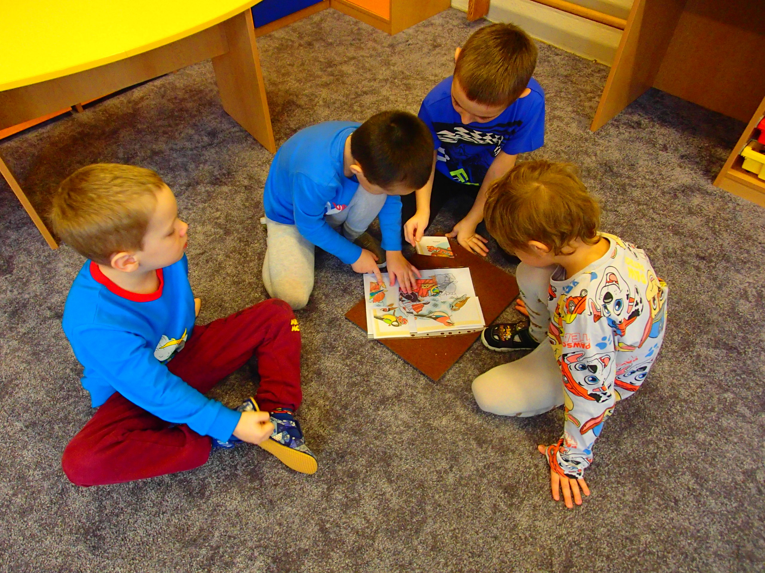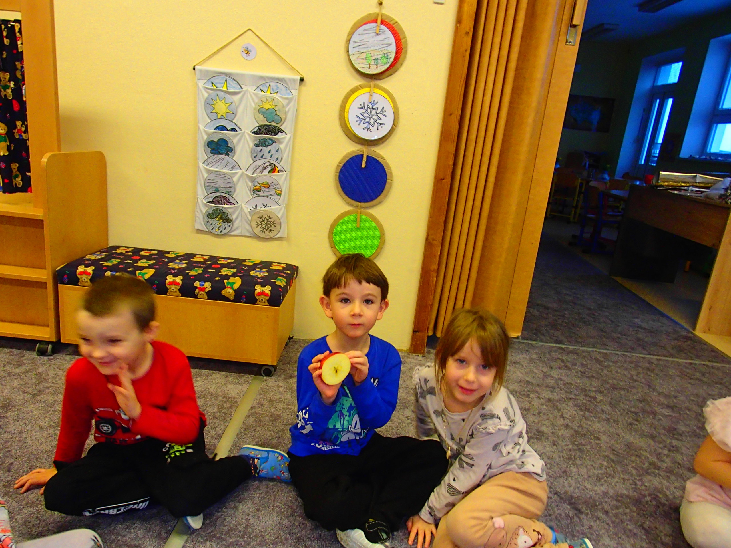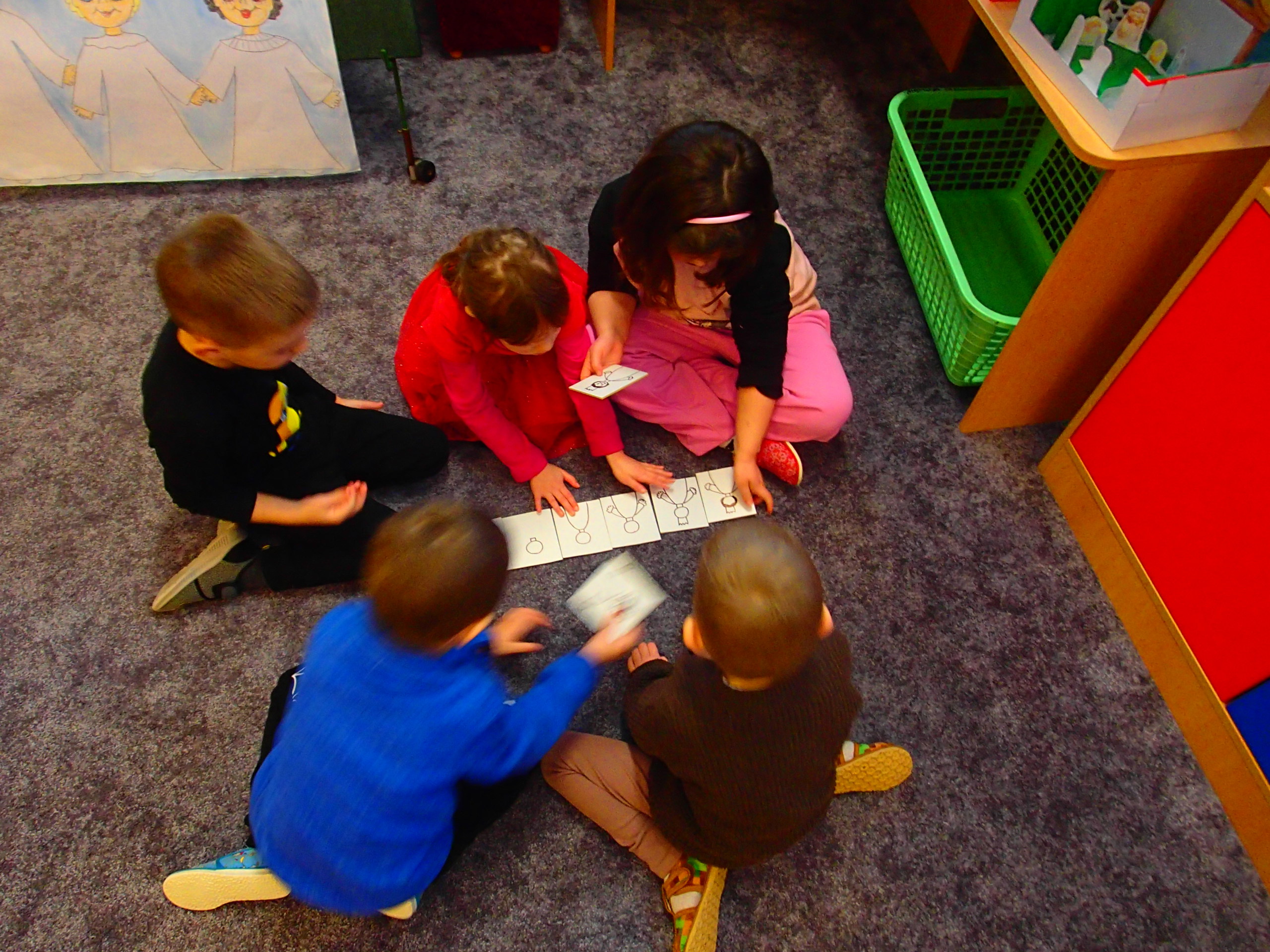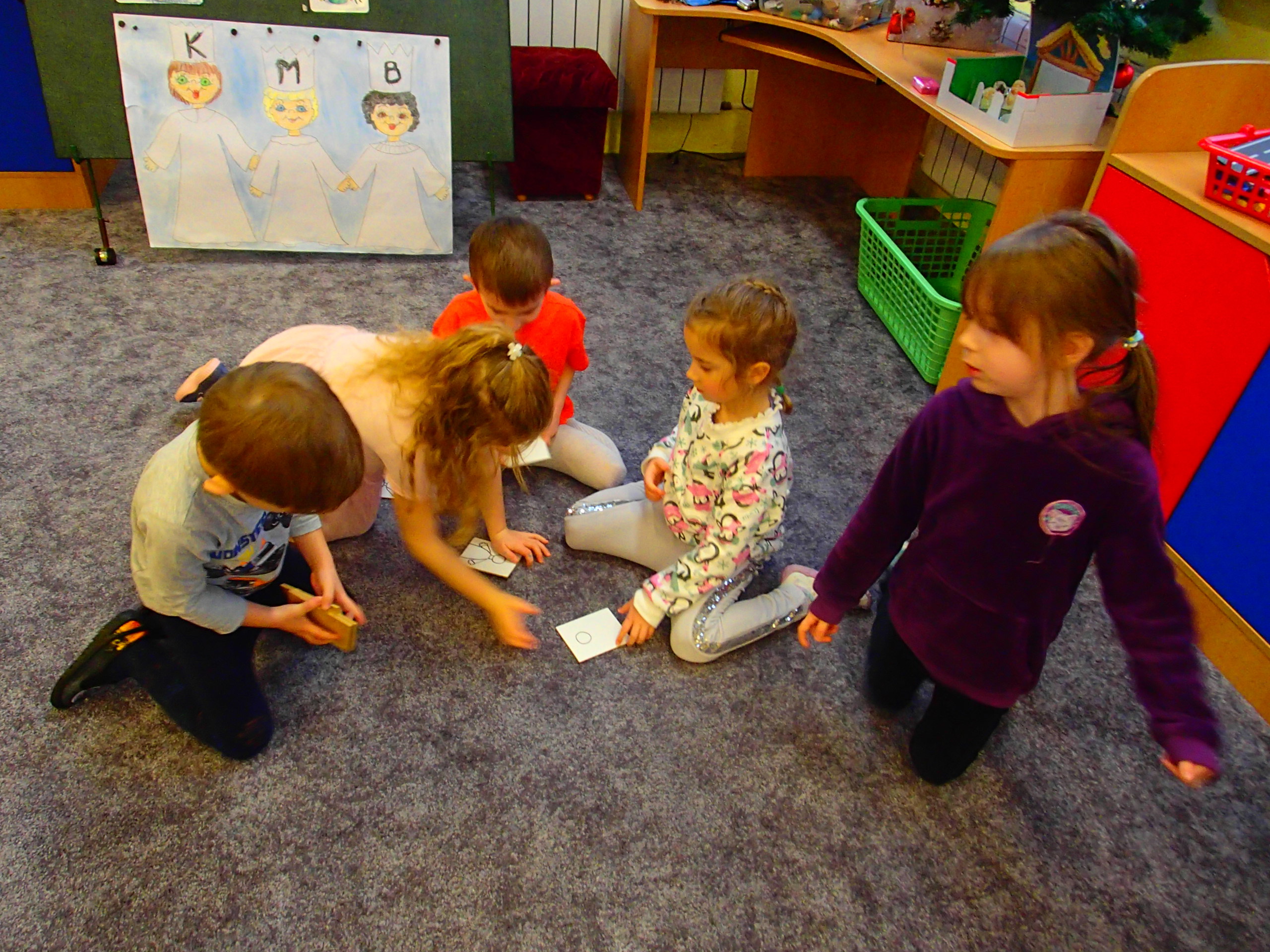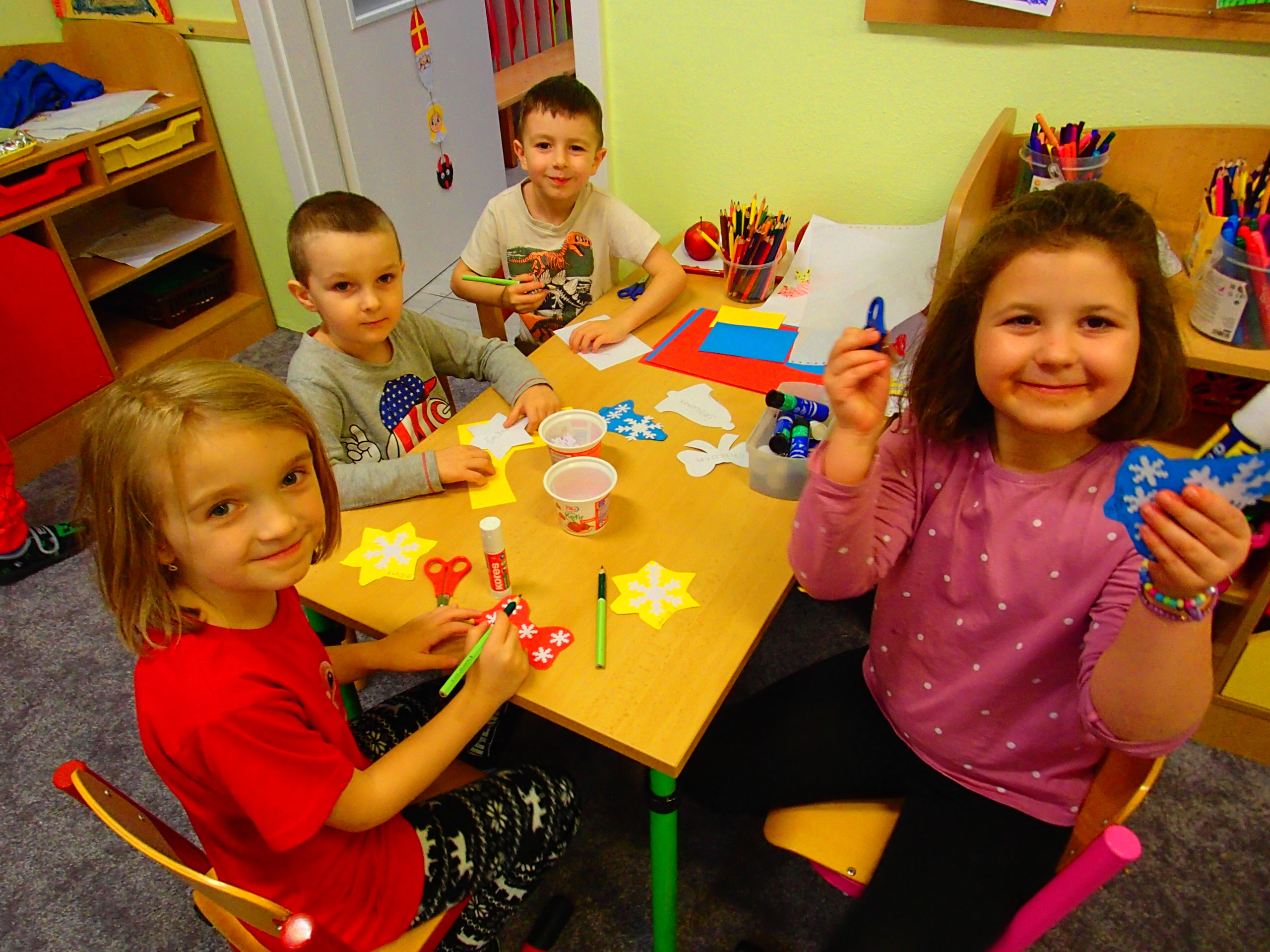 NEJDŘÍVE HLEDALY DĚTI MEZI DVĚMA OBRÁZKY DESET ROZDÍLŮ, NÁSLEDNĚ DOKRESLOVALY KAPROVI ŠUPINKY PODLE DANÉHO ZADÁNÍ, DÁLE KRESLILY OBRÁZEK S VÁNOČNÍM PŘÁNÍM A TAKÉ ZDOBILY SROMEČEK NA PLOŠE POMOCÍ BAREVNÝCH MÍČKŮ, TAKÉ ŘADILY OBRÁZKY PODLE ČASOVÉ POSLOUPNOSTI -JAK SE PEČE CUKROVÍ A ROVNĚŽ POMOCÍ ZAKRESLENÝCH CESTIČEK HLEDALY KOMU PATŘÍ DÁREČEK. NA ZÁVĚR SI PROHLÉDLY KNIHY Z NABÍDKY.