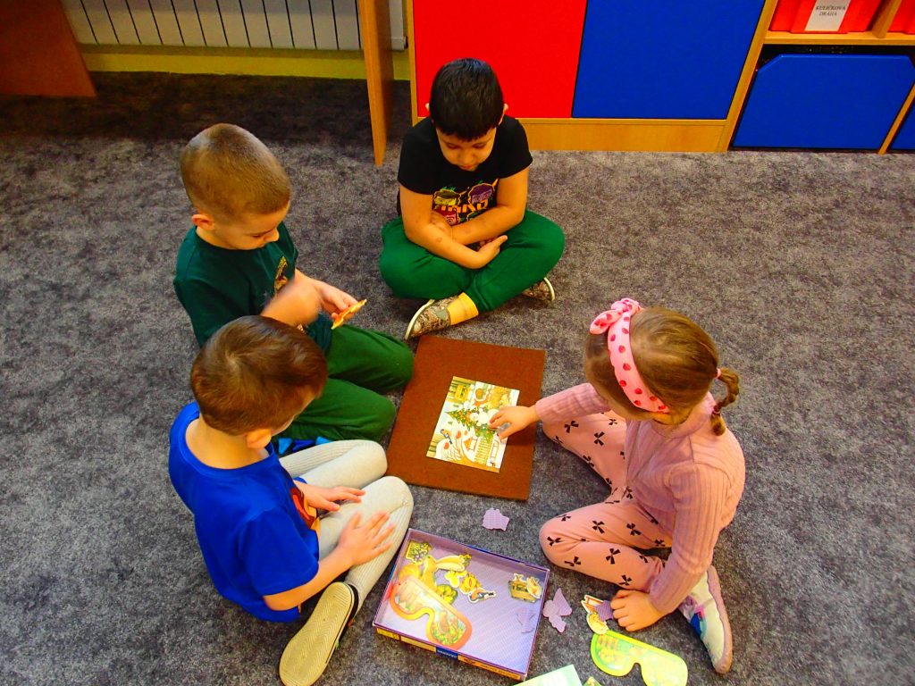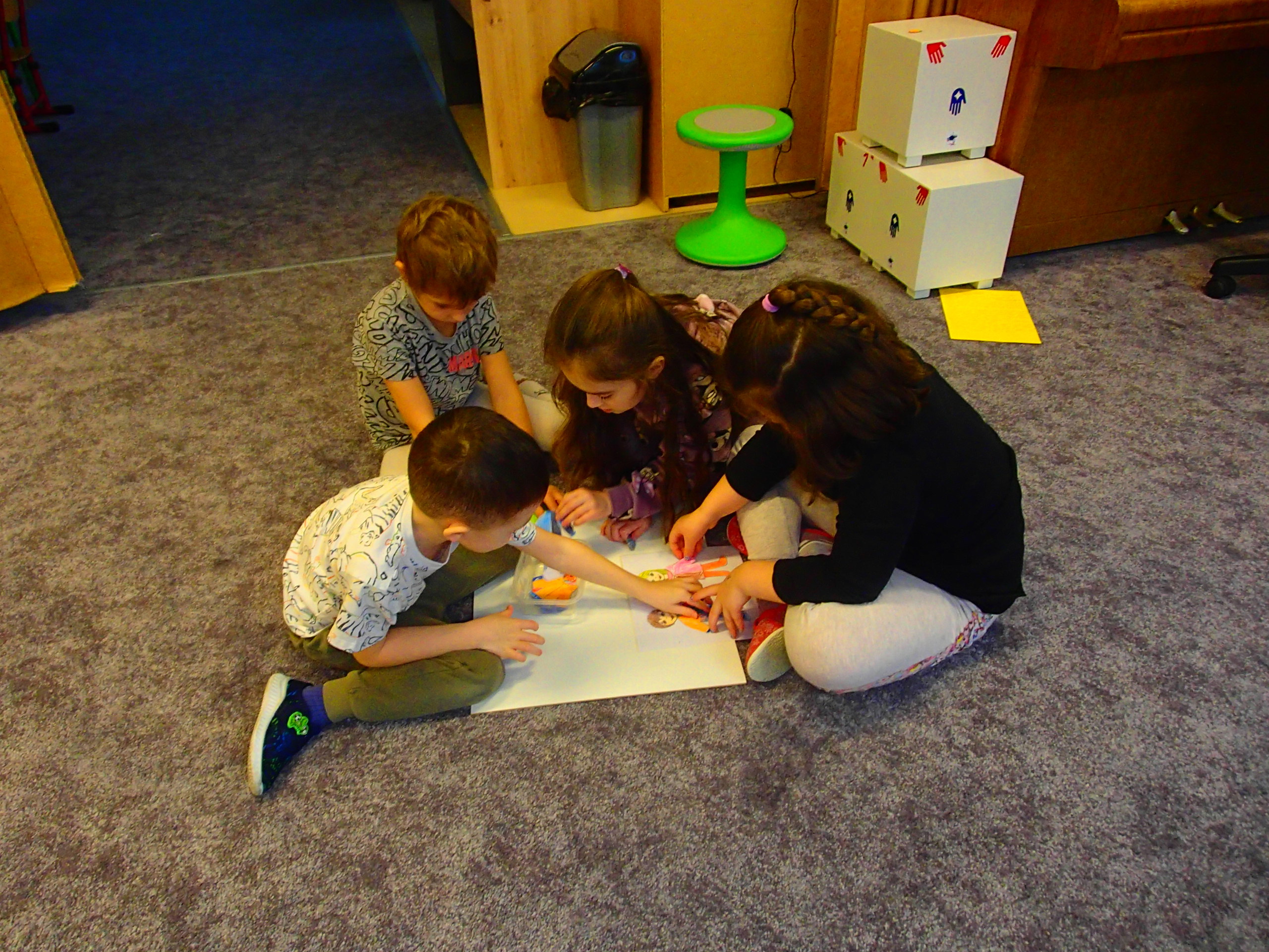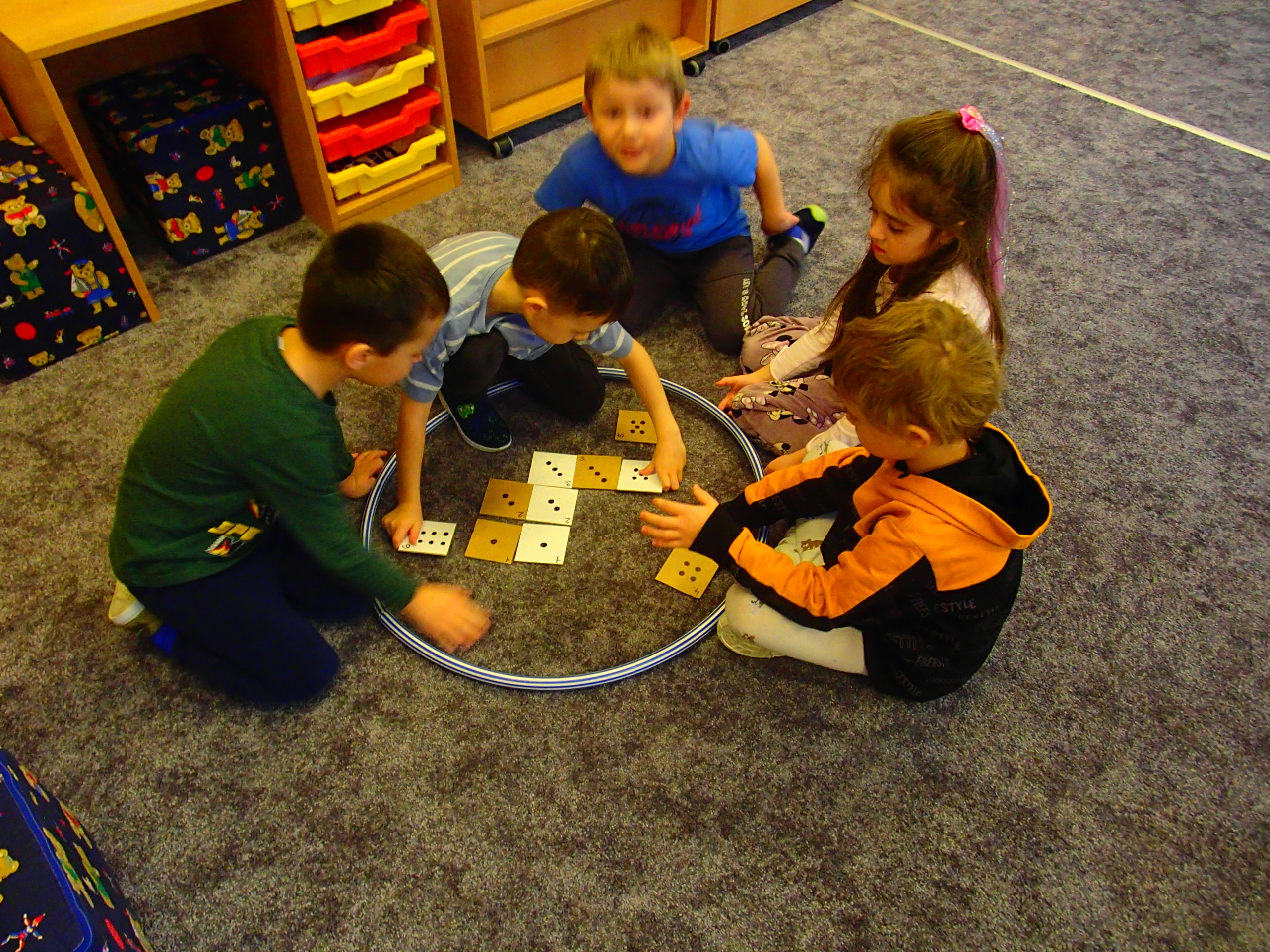 DĚTI JSOU VEDENY K VZÁJEMNÉ SPOLUPRÁCI VE SKUPINÁCH, PROHLUBUJÍ SVÉ ZNALOSTI I VĚDOMOSTI K DANÉMU TÉMATU. ROZVÍJÍ SCHOPNOST SE DOMLUVIT A VYJÁDŘIT SVŮJ VLASTNÍ NÁZOR PŘI PLNĚNÍ ZADANÉHO ÚKOLU.