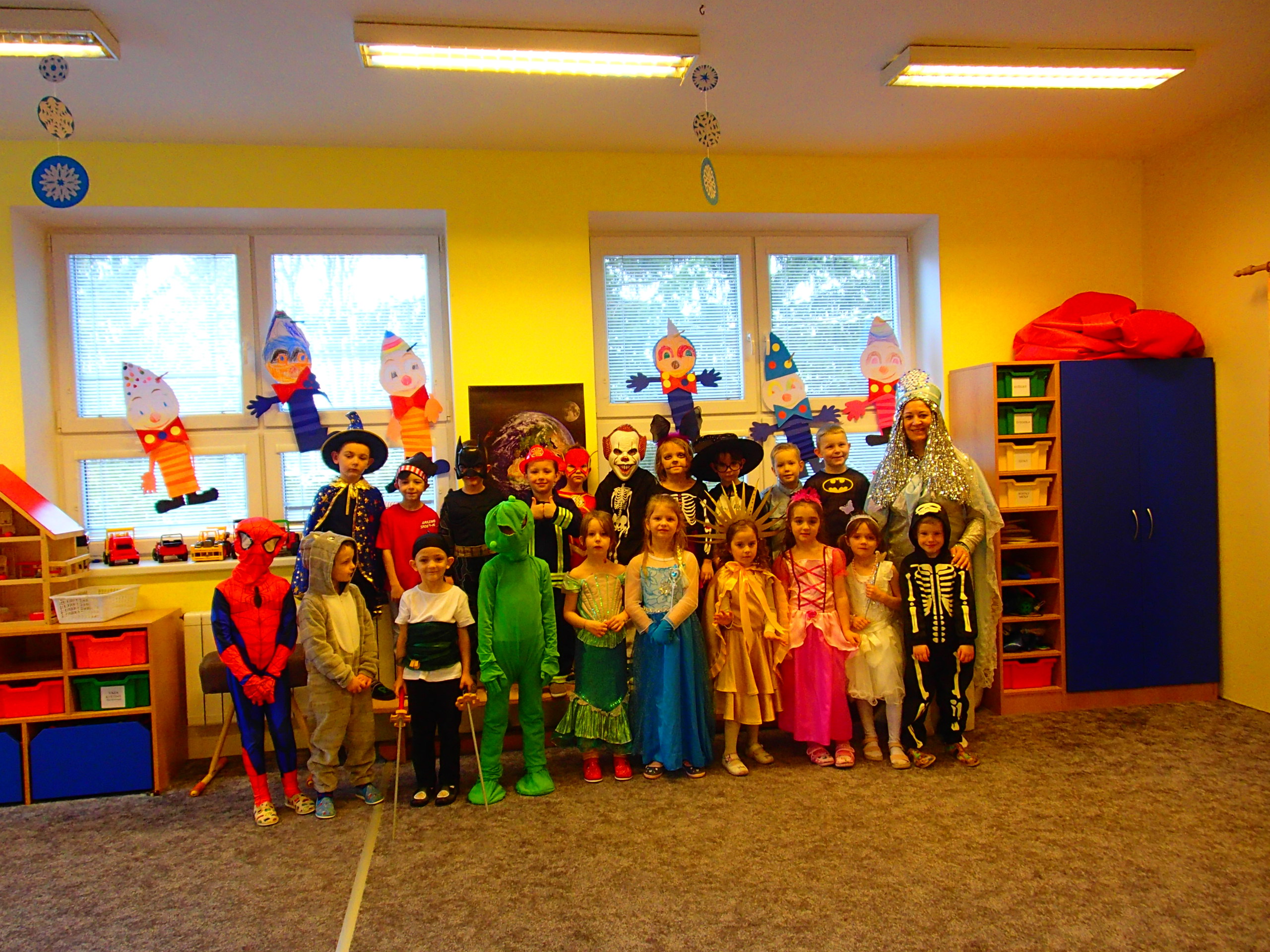 NEŽ ZAČAL DUŠIČEK BÁL, KAŽDÝ S CHUTÍ POMÁHAL. VÝZDOBU JSME VYTVÁŘELI, VELKOU RADOST Z TOHO MĚLI. VŠICHNI NÁPADY UŽ HÝŘÍ, DÝNĚ, DUCH I NETOPÝŘI.